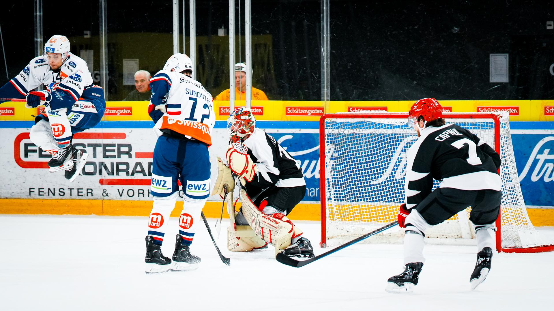 Rappi möchte zehn Minuten vor dem Schluss einen Angriff starten und vertändelt die Scheibe in der eigenen Zone. Niemand da um sie zu holen, zumindest keiner im Retro-SCRJ-Jersey (spielten heute in schwarz zu Ehren der 90er-Generationen). Plötzlich ist Malgin an der Scheibe, schaut kurz auf und wumms! 2:1 ZSC Lions! Hände in die Höhe und ab in die Jubeltraube der Kollegen. Und 44 Sekunden später darf Rudolfs Balcers sich ebenfalls herzen lassen von seinen Kollegen. Im Powerplay versorgt er die Scheibe «Top-Shelf» - im rechten Lattenkreuz. Auf der Bank nimmt er danach Platz und schaut sich seinen Treffer nochmals auf dem Videowürfel an. Dann herzt er Kollegen Chris Baltisberger und klopft ihm auf den Helm: «Merci für den perfekten Screen vor Punnenovs!» So geht der Dreier am Schluss ziemlich in Ordnung und die Lions feiern den fünften Sieg in Serie.