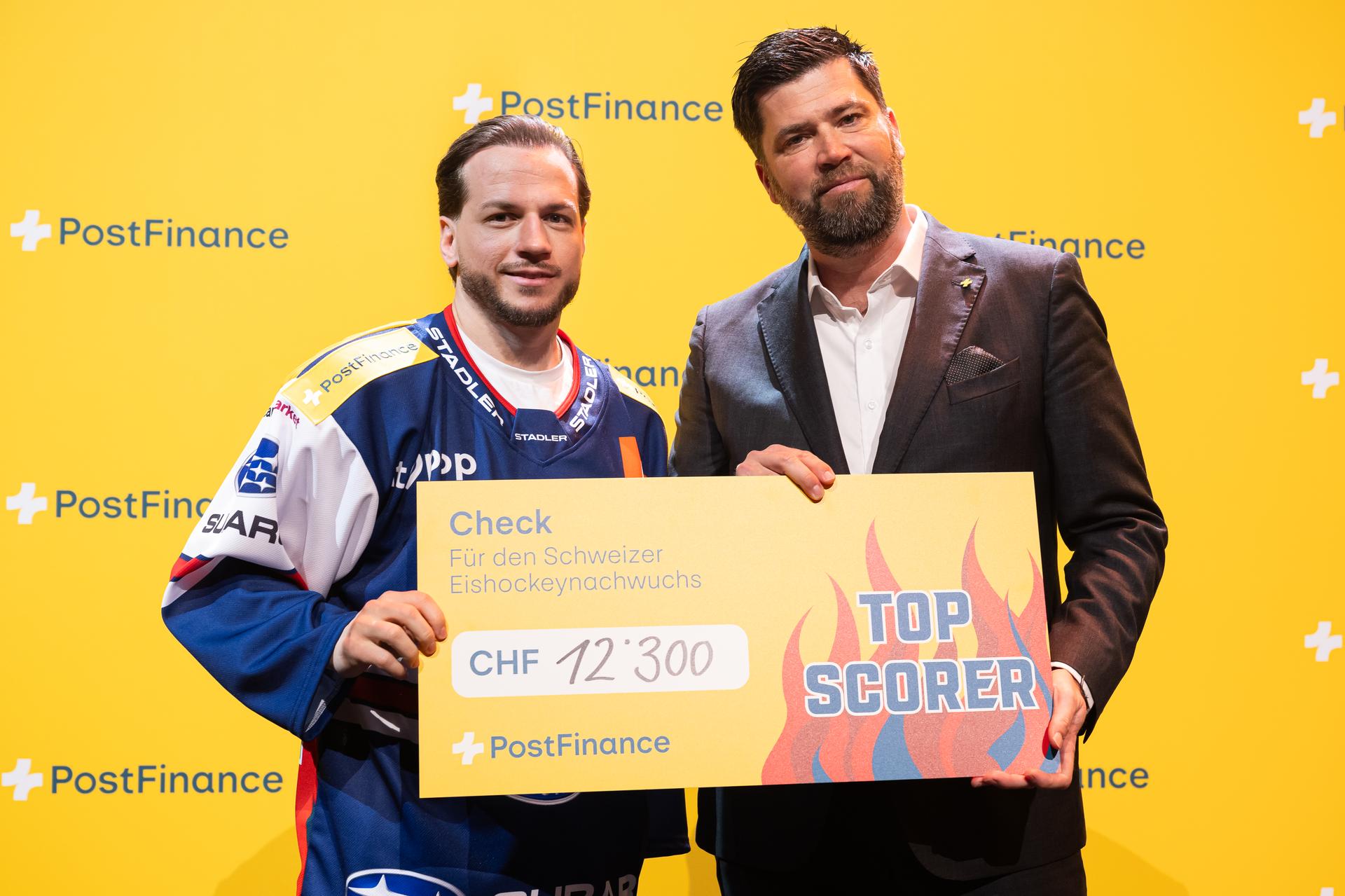 Die seit der Saison 2025/26 beim ZSC spielende Estländerin Kristi Shashkina erzielte in 28 Spielen 26 Scorerpunkte (10 Tore, 16 Assists). Sie erhielt von PostFinance-Geschäftsleitungsmitglied Ron Schneider einen symbolischen Check in der Höhe von 18'750 Franken überreicht. Dem Schweizer Stürmer Sven Andrighetto gelangen während der Regular Season in 41 Spielen 17 Tore und 24 Assists. Er erhielt einen Check über 12'300 Franken.